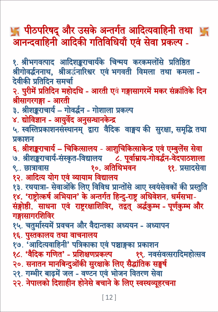 Aditya Vahini is a spiritual-social organization upholding Sanatana Dharma, working with Govardhan Math to spread knowledge, service, and devotion.